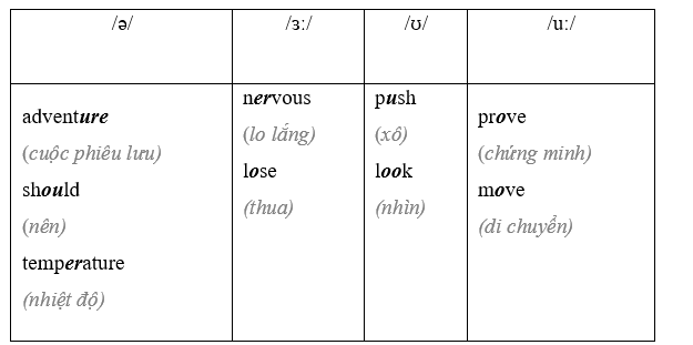(Sử dụng bảng thuật ngữ để tìm tính từ mô tả:)