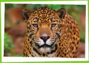 This big cat is called a jaguar. It lives in the rain forests. It is orange and white. It has black spots. It’s very strong and fast. It’s also shy. Some people think jaguars are scary.