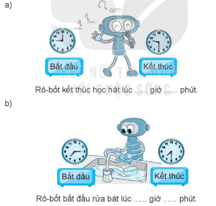 a) Rô-bốt kết thúc học hát lúc 9 giờ 30 phút.