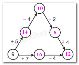 Tính nhẩm kết quả các phép tính theo chiều mũi tên rồi điền số thích hợp vào ô trống.