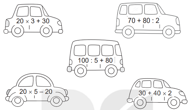 100 : 5 + 80 ; 70 + 80 : 2; 30 + 40 x 2