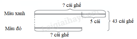Đáp số: Ghế màu xanh: 24 cái; Ghế màu đỏ: 19 cái