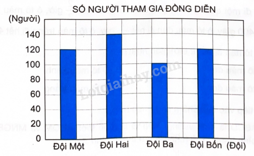 Biểu đồ sau cho biết số người tham gia đồng diễn của bốn đội trong một hội thao.