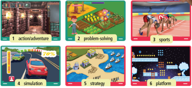 1. Do you play video/PC/mobile games? Where do you play them: on a games console? on a computer/laptop? on a smartphone/ tablet? Tell your partner.