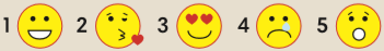 5. Match emojis 1-5 in the Writing box with meanings a-e.