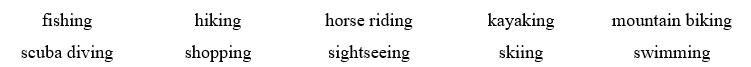 1 VOCABULARYWhich of these activities are likely to be on offer at or near this location? Where could you do the others?