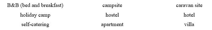 5 VOCABULARY Work in pairs. Check the meaning of the words below. Then discuss which types of accommodation you prefer.