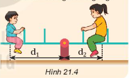b) Cho biết người chị (bên phải) có trọng lượng P= 300 N, khoảng cách d= 1 m, còn người em có trọng lượng P= 200 N. Hỏi khoảng cách dphải bằng bao nhiêu để bập bênh cân bằng nằm ngang?