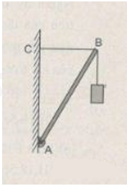 Một thanh đồng chất có trọng lượng P được gắn vào tường nhờ một bản lề và được giữ nằm ngang bằng một dây treo thẳng đứng. Xét momen lực đối với bản lề. Hãy chọn đáp án đúng?