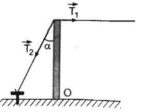 Một dây phơi căng ngang tác dụng một lực T1 = 200 N lên cột. Lực căng T2 của dây chống là bao nhiêu? Biết α = 300