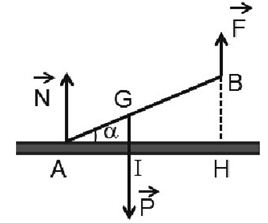 \(\begin{array}{l}P.AG.c{\rm{os}}\alpha  = F.AB.c{\rm{os}}\alpha \\ \leftrightarrow mg.AG = F.AB\\ \to F = \frac{{mg.AG}}{{AB}} = \frac{{60.10.(1,5 – 1,2)}}{{1,5}} = 120N\end{array}\)