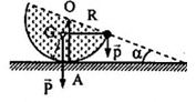 \(\begin{array}{l}P.OG.\sin \alpha  = p.R.c{\rm{os}}\alpha \\ \leftrightarrow Mg.\frac{{3R}}{8}\sin \alpha  = mgRc{\rm{os}}\alpha \\ \to {\rm{M}}\frac{{3}}{8}\sin \alpha  = mc{\rm{os}}\alpha \\ \to {\rm{tan}}\alpha {\rm{ = }}\frac{{8m}}{{3M}} = \frac{{8.7,5}}{{3.100}} = 0,2\\ \to \alpha  = 11,{31^0}\end{array}\)