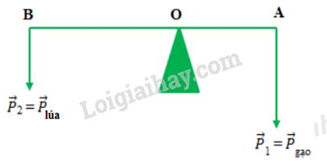 Trọng lượng của gạo và lúa là: \(\left\{ \begin{array}{l}{P_1} = 150N\\{P_2} = 100N\end{array} \right.\)