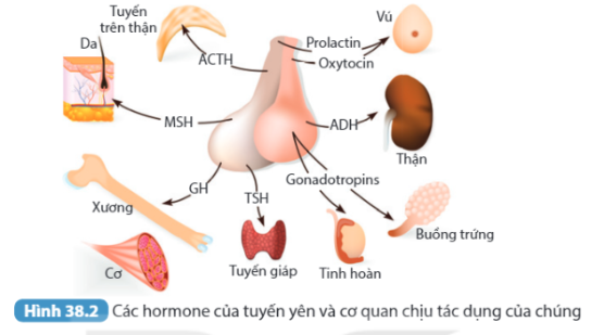 Vận dụng kiến thức về hệ nội tiết ở người và hình 38.2 để trả lời câu hỏi.