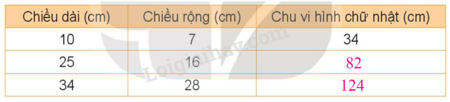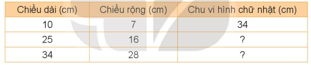 Hãy tính chu vi hình chữ nhật theo kích thước như bảng sau: