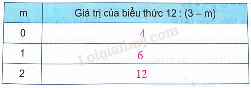 Với m = 1 thì 12 : (3 – m) = 12 : (3 – 1) = 12 : 2 = 6