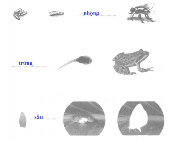 Viết tên giai đoạn còn thiếu vào chỗ … trong quá trình phát triển mỗi con vật dưới đây cho phù hợp.