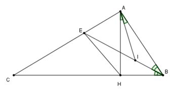 Cho tam giác \(ABC\) có \(AH \bot BC\) và \(\widehat {BAH} = 2.\widehat C\) . Tia phân giác của góc \(B\) cắt \(AC\) ở \(E.\) Tia phân giác của góc \(BAH\) cắt \(BE\) ở \(I.\) Khi đó tam giác \(AIE\) là tam giác