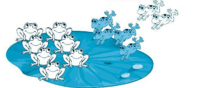 Số con ếch tất cả = số con ếch ban đầu + số con ếch nhảy vào.