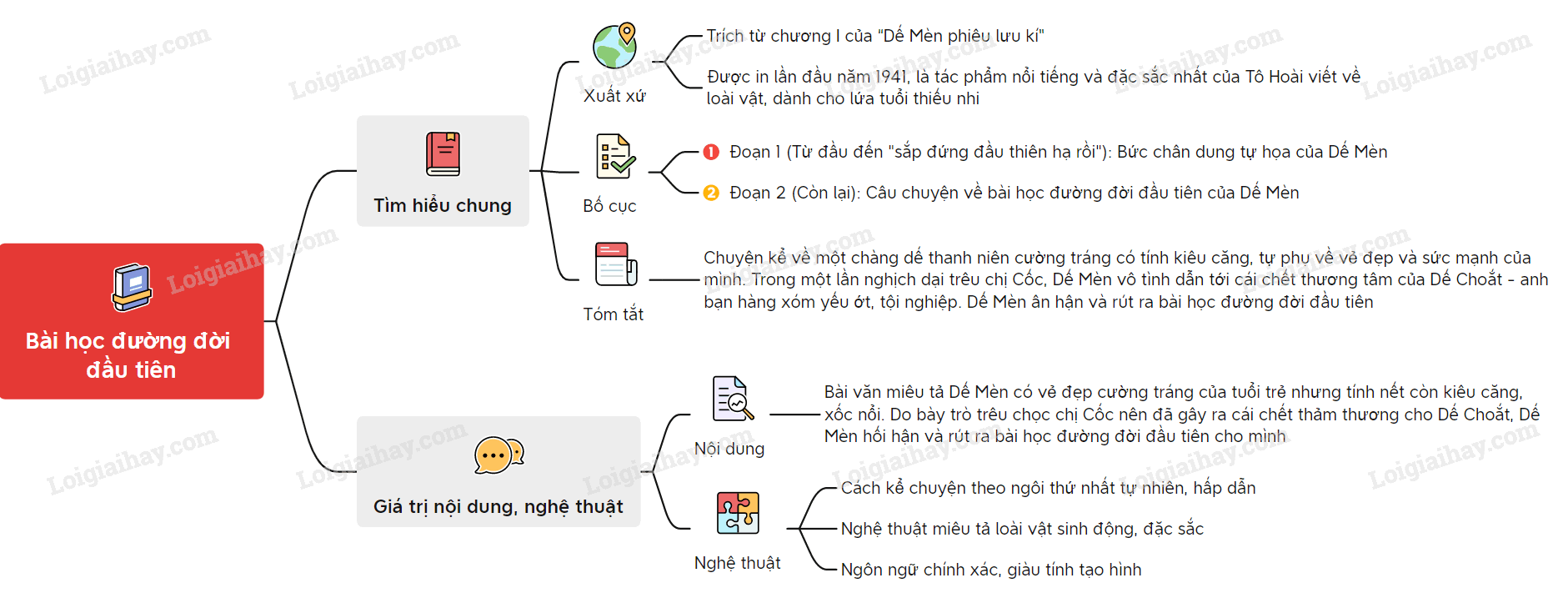 Sơ đồ tư duy đoạn trích “Bài học đường đời đầu tiên”: