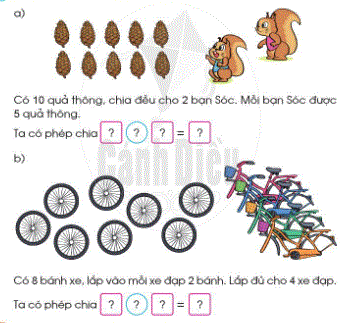 Xem tranh rồi nói phép chia thích hợp: