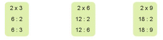 6 : 2 = 3                                  12 : 2 = 6                               18 : 2 = 9