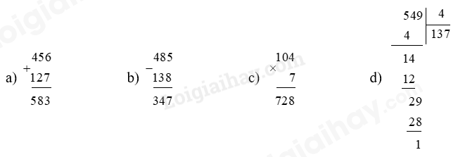 Câu 1. Đặt tính rồi tính: