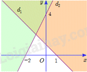 Điểm O không thuộc đường thẳng \({d_2}:3x + 2y – 6 = 0\), \(3.0 + 2.0 – 6 < 0\) và O thuộc phần không bị gạch chéo của đường thẳng \({d_2}\) nên \(3x + 2y – 6 < 0\) là một bất phương trình của hệ.