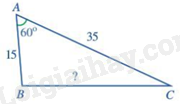 Theo định lí cosin ta có: \(B{C^2} = A{B^2} + A{C^2} – 2.AB.AC.\cos A = {15^2} + {35^2} – 2.15.35\cos {60^0} = 925\)\( \Rightarrow ? = \sqrt {925} \)