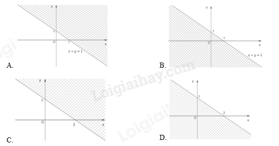 Trong mặt phẳng tọa độ Oxy, tập hợp các điểm \(\left( {{x_0};{y_0}} \right)\) sao cho khi thay các giá trị \({x_0};{y_0}\) vào bất phương trình bậc nhất hai ẩn luôn được bất phương trình đúng được gọi là miền nghiệm của bất phương trình đó.