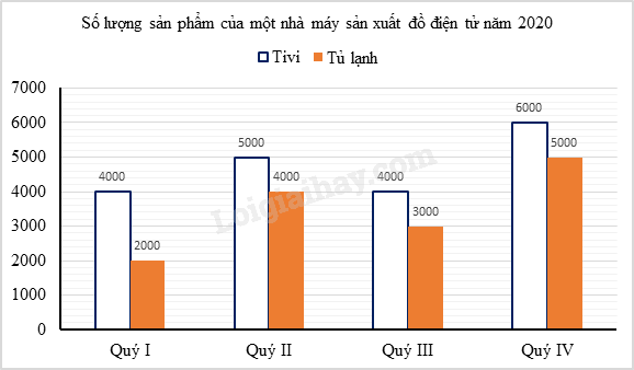 Số lượng sản xuất sản phẩm của một nhà máy đồ điện tử trong năm 2020 được cho bởi biểu đồ sau:
