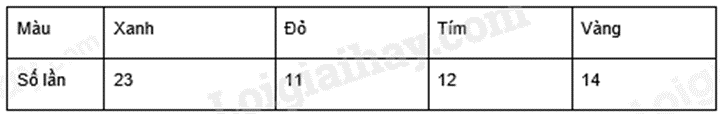 Một chiếc hộp kín đựng một số quả bóng màu xanh, đỏ, tím, vàng có cùng kích thước. Trong một trò chơi, người chơi lấy ngẫu nhiên một quả bóng, ghi lại màu rồi trả lại bóng vào hộp, Nam thực hiện 60 lần và được kết quả như bảng sau: