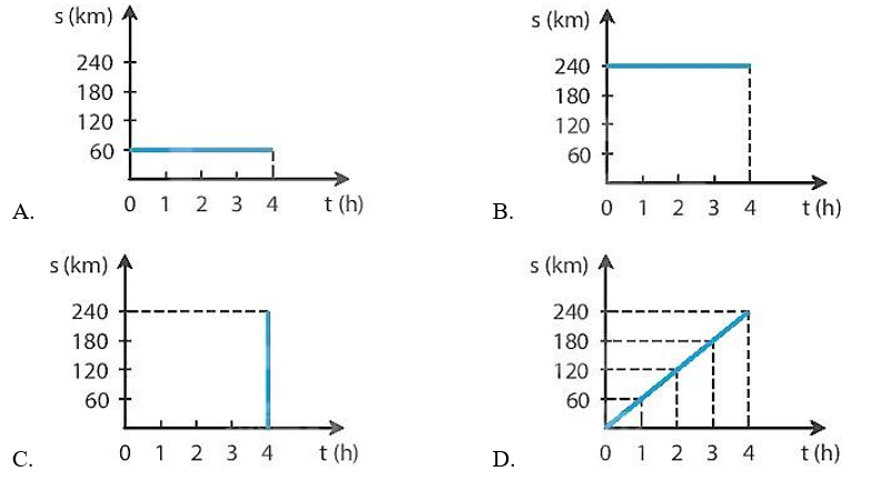 Hình vẽ nào sau đây biểu diễn đúng đồ thị quãng đường – thời gian của chuyển động trên?