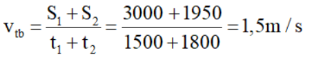 Vận tốc trung bình của người đi bộ trên cả hai đoạn đường là: