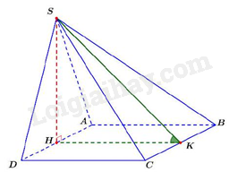 Suy ra \(SH \bot \left( {ABCD} \right)\) và \(HK \bot BC\).