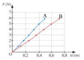 Câu 4: Đồ thị biểu diễn sự phụ thuộc độ lớn lực đàn hồi F theo độ dãn lò xo Δl của hai lò xo A và lò xo B đã cho như hình vẽ. Hãy so sánh độ cứng của hai lò xo?