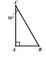Câu 5: Cho tam giác ABC, có \(\angle A = {90^0};\angle C = {30^0}\). Khi đó quan hệ giữa ba cạnh AB,AC,BC là: