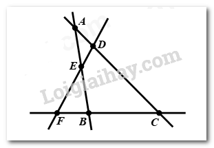 Có \(4\) bộ ba điểm thẳng hàng: \(\left( {A,E,B} \right);\left( {F;E,D,} \right);\left( {F,B,C} \right);\left( {A,D,C} \right)\)