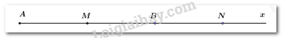 b) Trên tia Ax ta có \(AB < AN{\kern 1pt} {\kern 1pt} \left( {8cm < 12cm} \right)\) suy ra điểm B nằm giữa hai điểm A và N