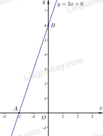 +) Giao điểm \(B\) của đường thẳng \(y = 3x + 6\) với trục \(Oy\) là: \({x_B} = 0 \Rightarrow {y_B} = 3{x_B} + 6 = 6\, \Rightarrow B\left( {0;6} \right)\)