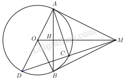 \( \Rightarrow MA = MB\) và \(MO\) là tia phân giác của \(\angle AMB\) (tính chất hai tiếp tuyến cắt nhau)