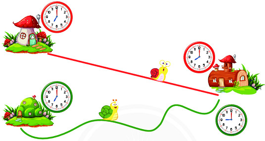 Sên Đỏ đi từ nhà lúc 7 giờ, đến nơi lúc 8 giờ.