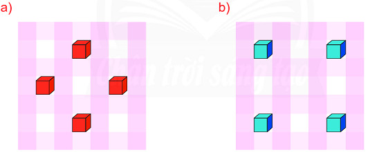Quan sát kĩ hình vẽ đã cho rồi đặt thêm một khối lập phương vào hình để có hai nhóm ba khối lập phương cùng nằm trên một đường thẳng.