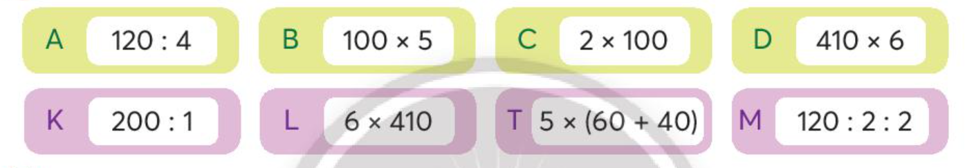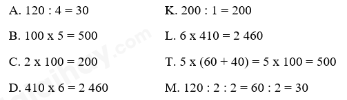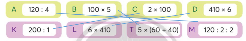 Tính giá trị từng biểu thức rồi nối hai biểu thức có kết quả giống nhau.