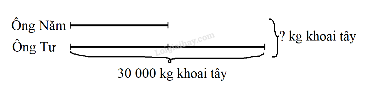 Ông Tư thu hoạch được 30 000 kg khoai tây, gấp 2 lần số khoai tây ông Năm thu hoạch được. Hỏi cả ông Tư và ông Năm thu hoạch được tất cả bao nhiêu ki-lô-gam khoai tây?