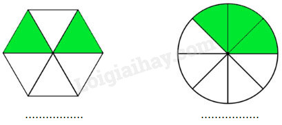 Viết phân số chỉ phần đã tô màu của mỗi hình dưới đây vào chỗ chấm: