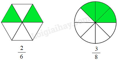 Quan sát hình vẽ, tìm số được tô màu và tổng số ô. Phân số chỉ phần đã tô màu có tử số là số ô được tô màu và mẫu số là tổng số ô.