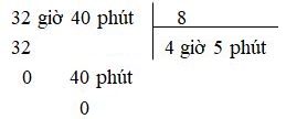 Vậy 32 giờ 40 phút : 8 = 4 giờ 5 phút.