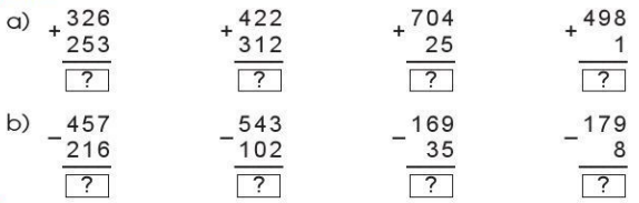a) 200 + 400 = 600                 600 – 100 = 500                300 + 60 + 7 = 367