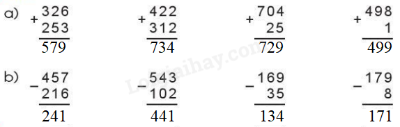 Cộng hoặc trừ các chữ số thẳng cột theo thứ tự từ phải sang trái.